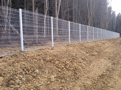 3D-забор — это секционное ограждение, где к опорным столбам крепится сварная сетка, на полотне которой есть V-образные выступы. Такие выступы работают как ребра жесткости, повышая прочность полотна в условиях статических и динамических нагрузок.